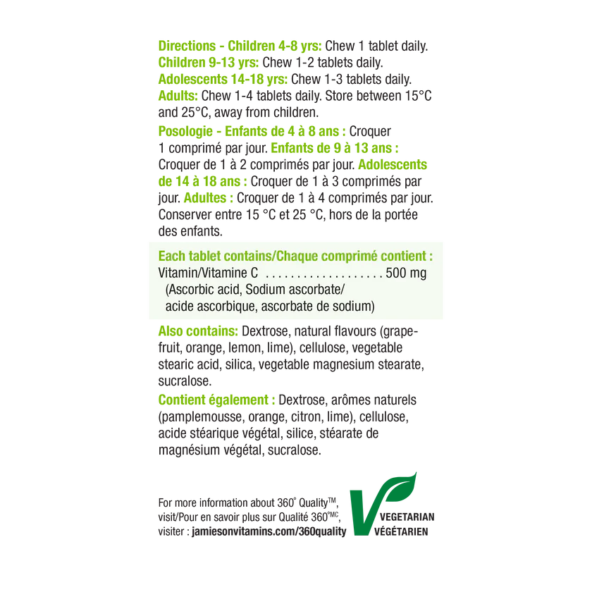 Jamieson Chewable Vitamin C is a convenient and tasty way to get all the benefits of this immune boosting nutrient!