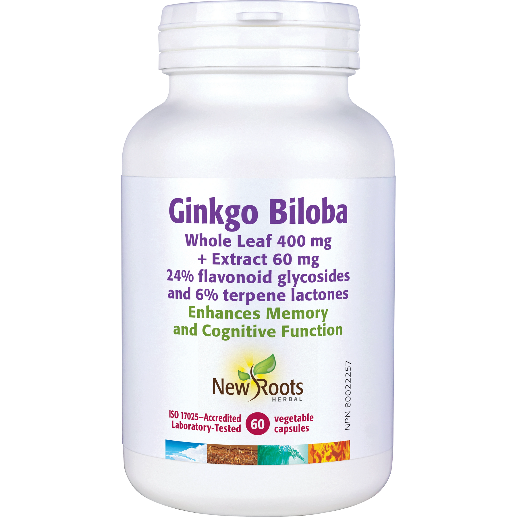 Ginkgo (Ginkgo biloba) leaf 400 mg, Ginkgo (Ginkgo biloba) leaf extract, 24% flavonoid glycosides and 6% terpene lactones 60 mg